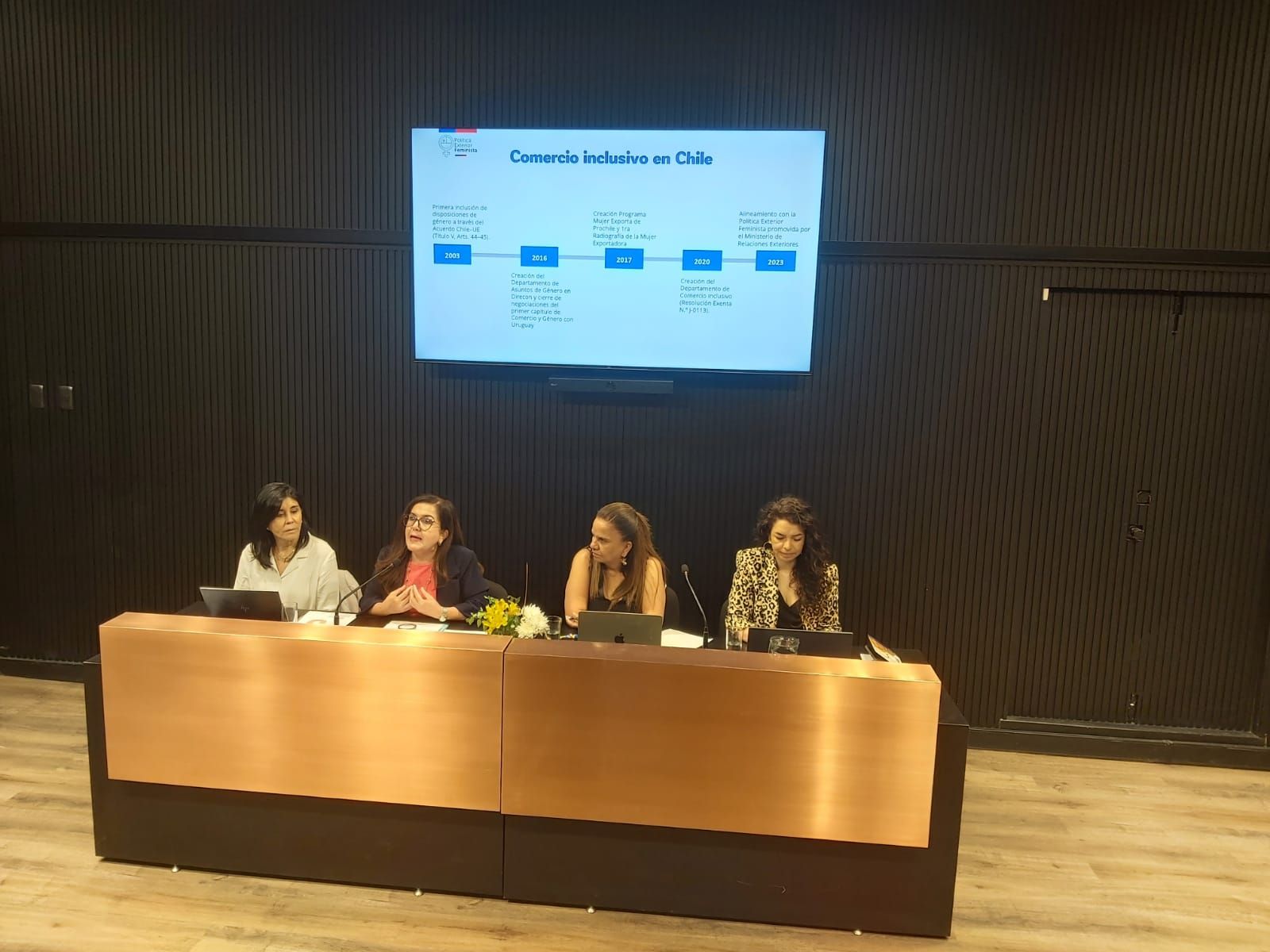 (Español) Los desafíos para una mayor participación de mujeres en el comercio internacional fue el tema del panel organizado por la Fundación como parte del Congreso Comercio Internacional y Derechos Humanos 2025 de la Universidad Academia de Humanismo Cristiano. El evento contó como panelistas con Constanza Vásquez Díaz, CEO de AUNA y directora nacional y vicepresidenta de ASECH (Asociación de Emprendedores de Chile); Marcela Otero Fuentes, directora general de asuntos económicos multilaterales de la Subsecretaría de Relaciones Económicas Internacionales Chile (SUBREI); y Nicole Verdugo Oviedo, presidenta del Women Economic Forum (WEF) Chile; Loreto Leyton López, directora ejecutiva de la Fundación, fue la moderadora.