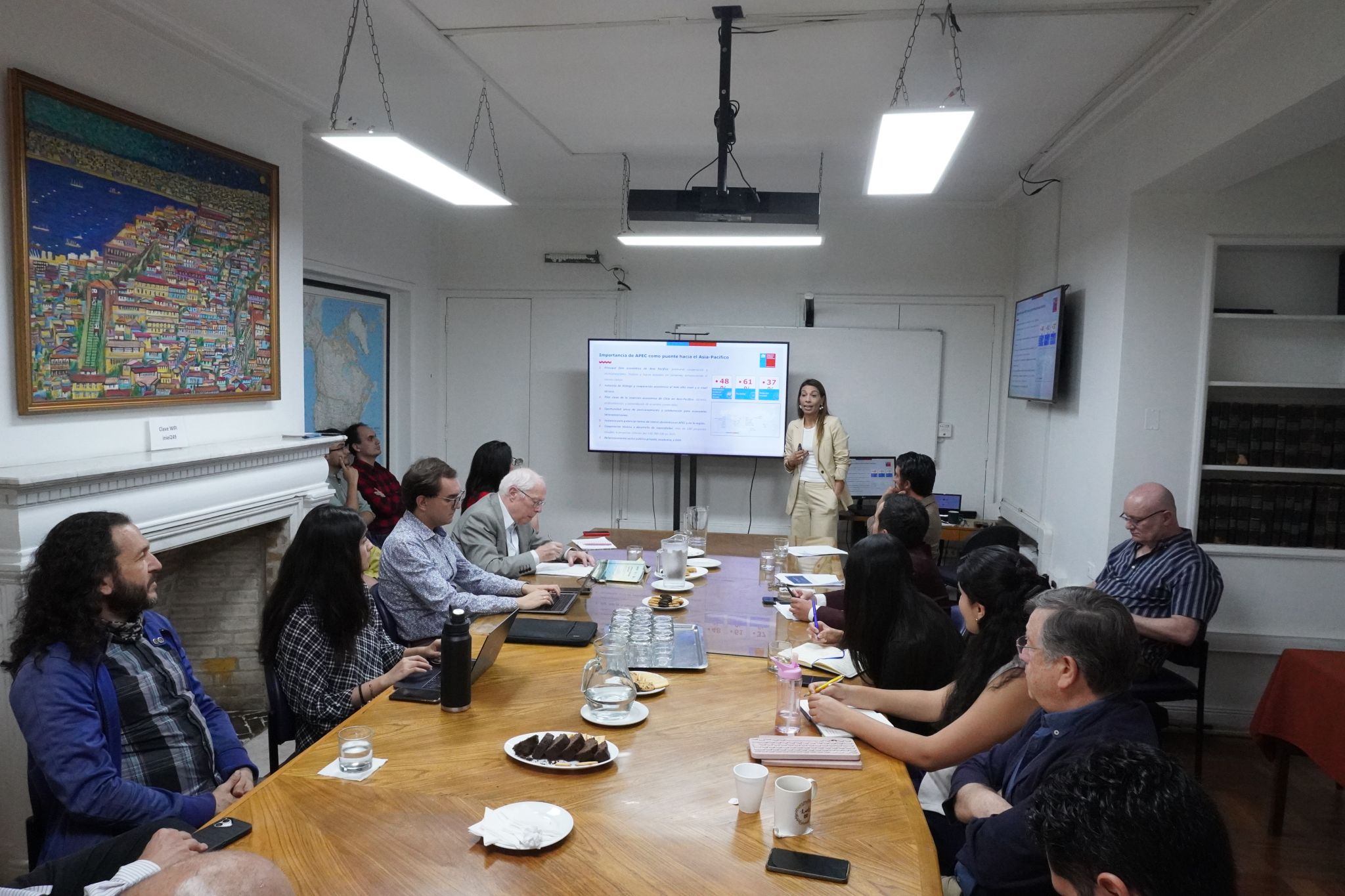 El seminario fue moderado por Dorotea López, directora del IEI, y tuvo a Andrés Bórquez, coordinador del Programa de Estudios sobre Asia del IEI; Manfred Wilhelmy, académico del IEI; y Krasna Bobenrieth, jefa del Departamento APEC de la Subsecretaría de Relaciones Económicas Internacionales Chile (SUBREI), como expositores. Adicionalmente, la moderadora le dio la palabra a Luis Alberto Pino, jefe de programas y contenidos de la Fundación, para que compartiera algunos elementos de cómo participa el sector privado en APEC, de las características de ABAC y de la última sesión plenaria del Consejo en 2025, que tuvo lugar en octubre en Busan, en la República de Corea.